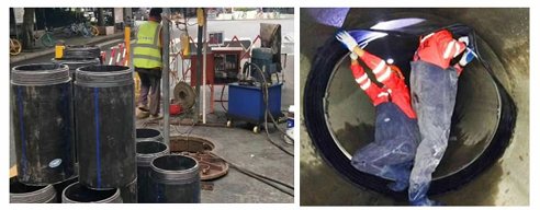 短管焊接内衬修复技术是一种管道非开挖短管及管片内衬整体和局部修复方法。该技术是将适合尺寸的HDPE管插入需要修复的旧管道内,利用原旧管道的刚性和强度为承受结构以及HDPE管耐腐蚀、耐磨损、耐渗透等特点,形成“管中管”复合结构使修复后的管道具备综合性能。