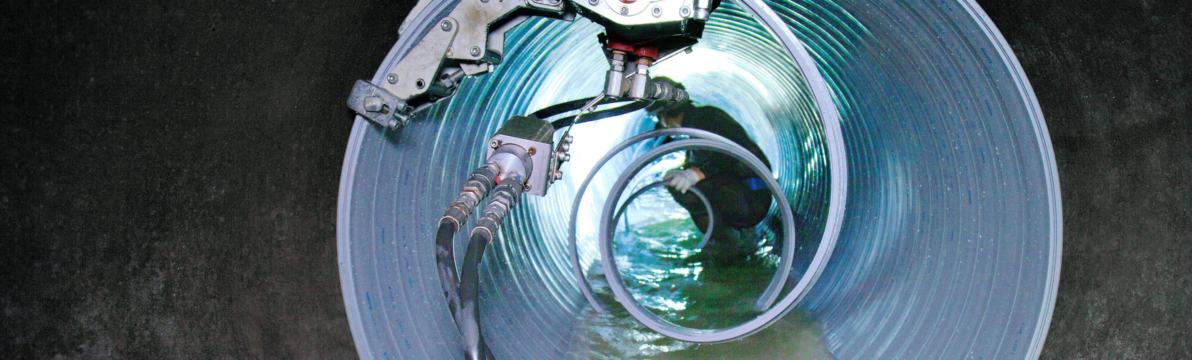 通过从材料配方、设备模具改进、PVC型材和钢带结构优化等方面进行深入研究,自主开发出了钢塑复合加强型(固定式)机械制螺旋缠绕管非开挖修复技术。是由PVC型材通过双锁扣螺旋缠绕在旧管内形成一条新管,并在新旧管之间通过灌浆形成的一条复合管。适用于大口径管道的修复,管道修复口径范围DN600--2600mm。