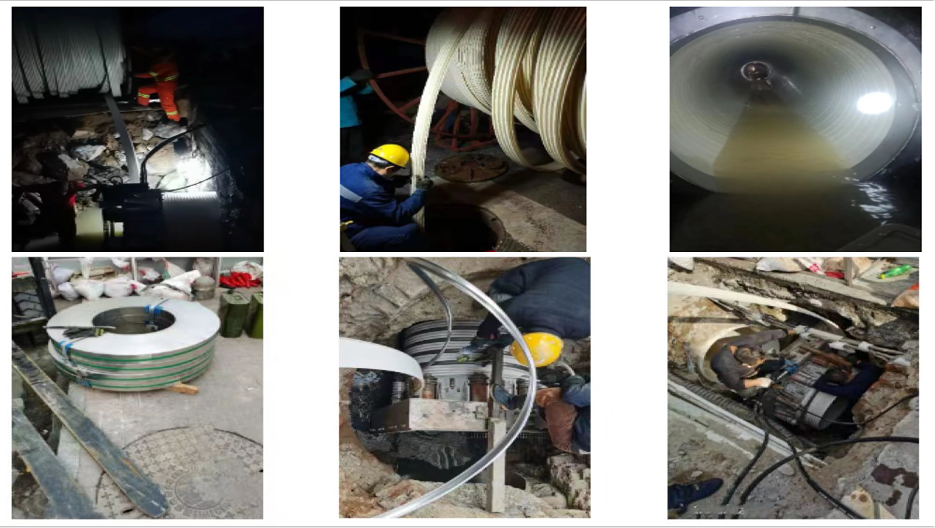 钢塑复合加强型(固定式)机械制螺旋缠绕非开挖修复技术,可通过现场制作各口径及规格的管道对目标管进行内衬修复。